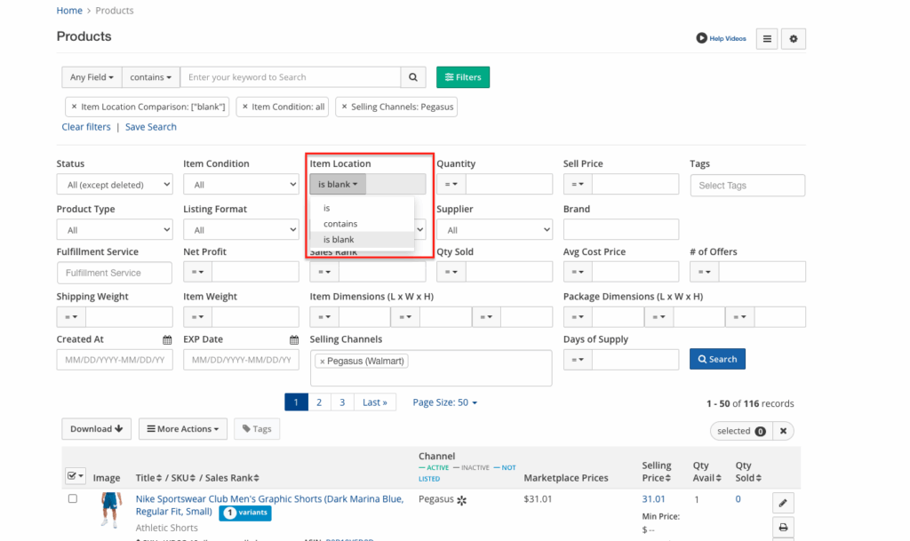 SellerChamp now allows you to search and filter products with blank locations directly from the Products page. This makes it easy to identify items that need location updates.